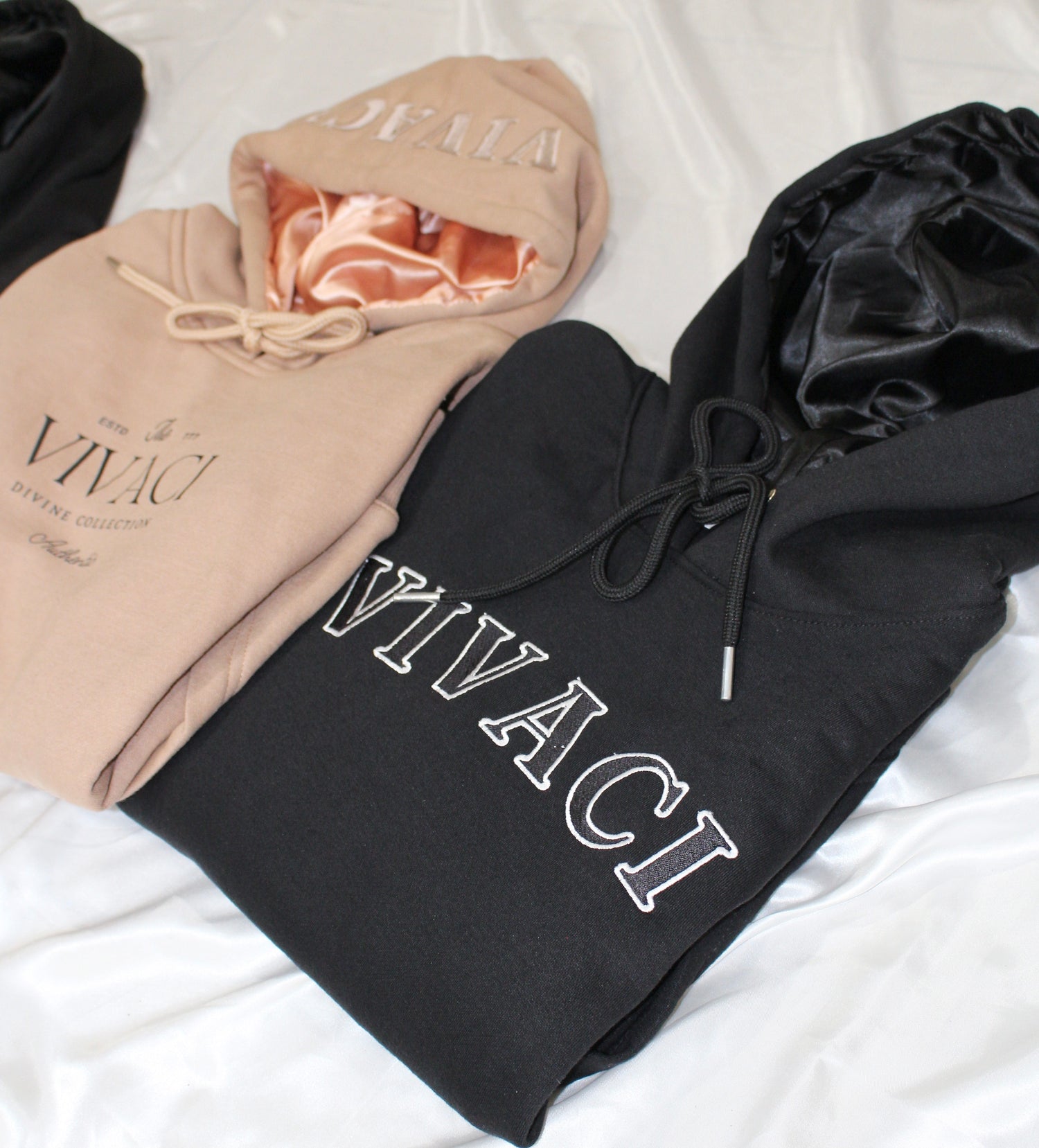 Our satin lined hoodies are lined with luxury silk-like satin which gives the inside of the hood a softer feel.